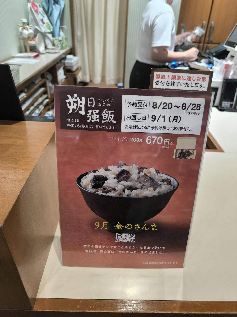 しかし、こちらの店舗では、おこわを売る冷蔵庫があって、五目おこわと豆の入った十勝おこわを購入できます。