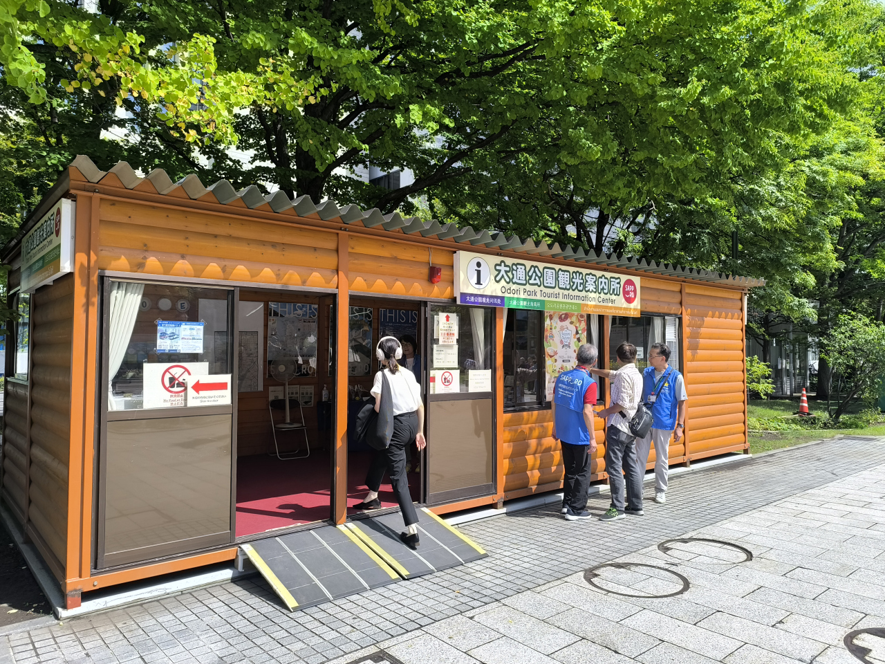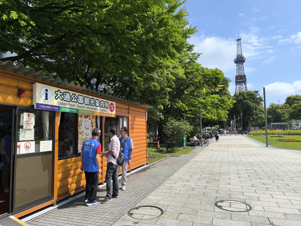 配布は無料で、夏期は、大通公園3丁目エリアの北側の通路上にある特設の観光案内所でいただけます。