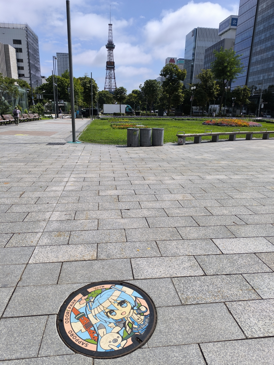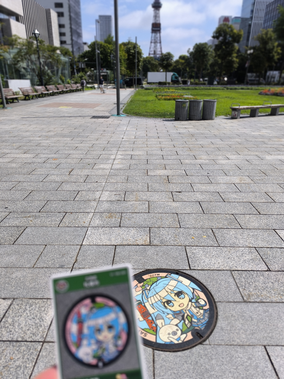 ちなみに、カード絵柄にもある本物のマンホールは、駅前通りを挟んだ大通公園3丁目エリアの北側通路上にあります。