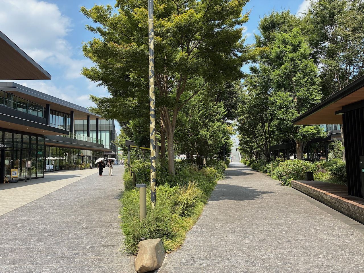 サンサンロードからエスカレーターを昇って広場に出ると、青空と樹々が綺麗でした。