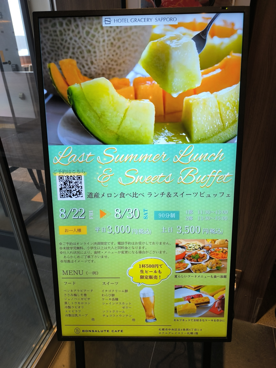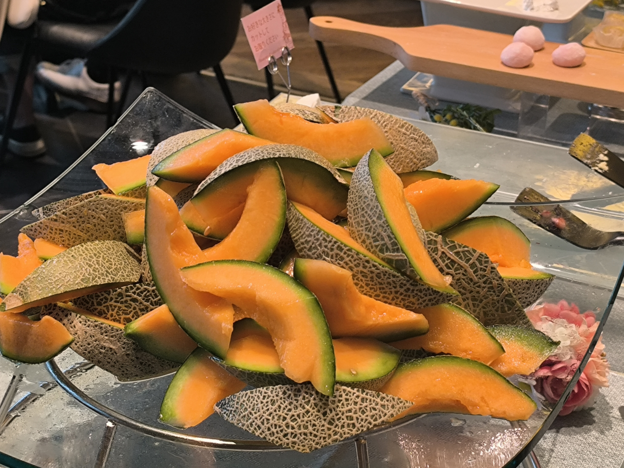 2025年8月下旬に道産メロン食べ比べプランというのを実施していましたが、食べやすくカットされた赤肉・青肉メロンのほか、ケーキ、ソフトクリーム、チョコレートタワーなどのスイーツ類、ピラフ、カレー、唐揚げなどのご飯メニューなどを、1時間半の時間制限はあるものの、お腹いっぱいいただくことができました。