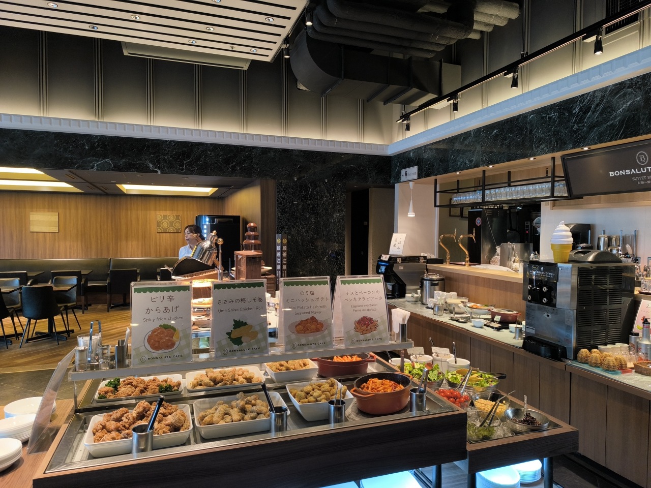 赤ちゃん連れの方も何組か訪れていて、端の方に奥まった4人掛け席を案内していただいたほか、対応したサービスや気遣いもしてくれて、気を遣う乳幼児連れでのビュッフェ利用も難なくこなせて良かったです。