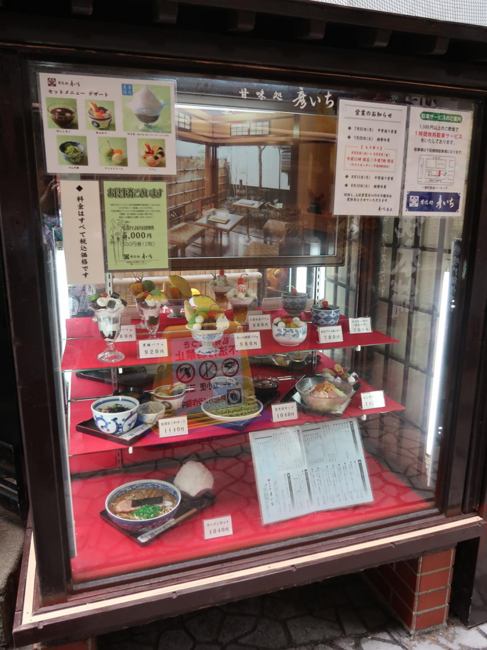 最初はどの脇道に入ればいいのかちょっと迷いますが、看板や食品サンプル・メニューを入れたショーケースが出ているのをお見落としなく。