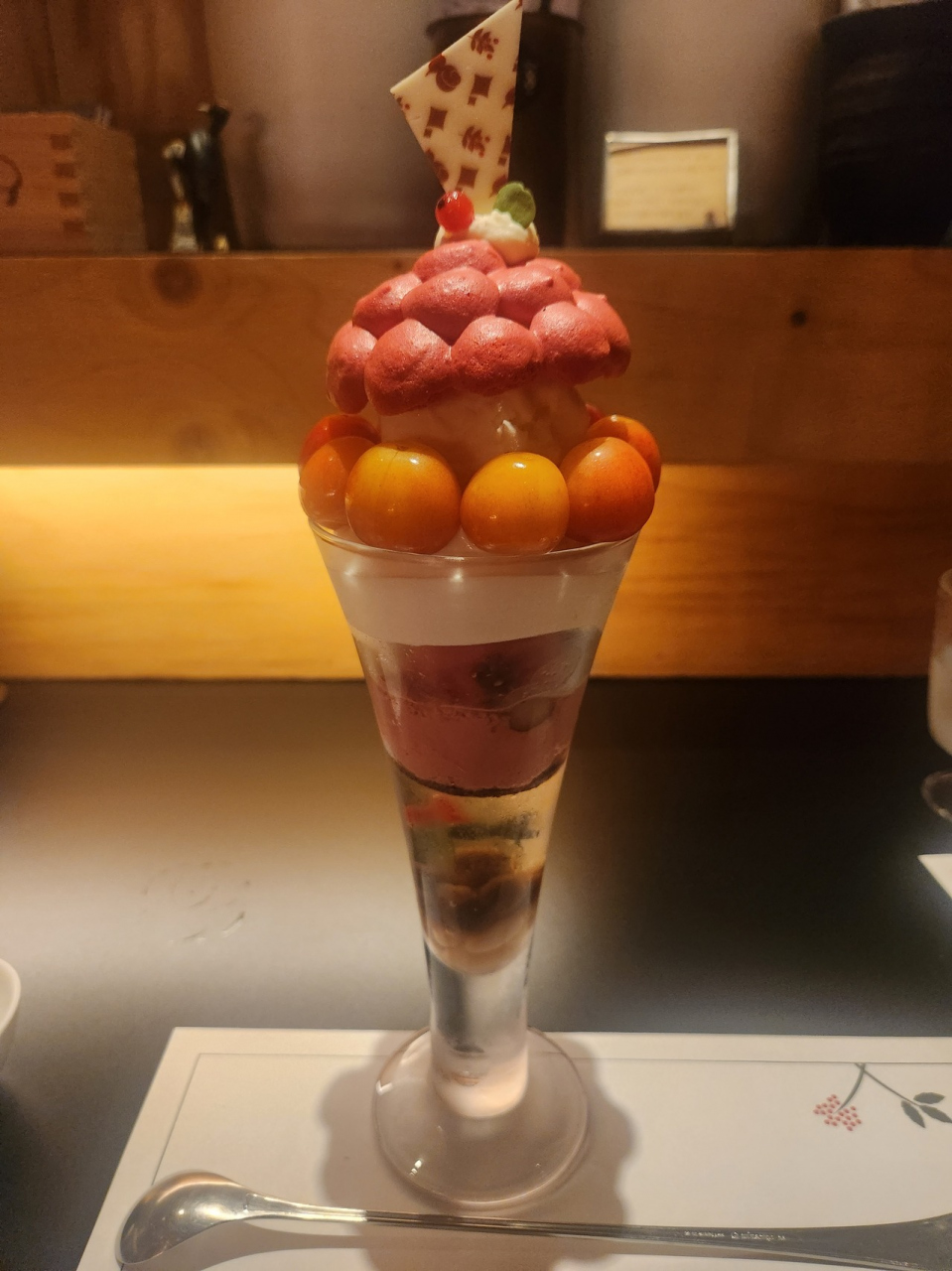 お酒メニューも豊富でどれを飲むかかなり迷います。スパークリングワインと一緒にパフェを楽しみました。甘すぎず上品な味でおいしかったです。