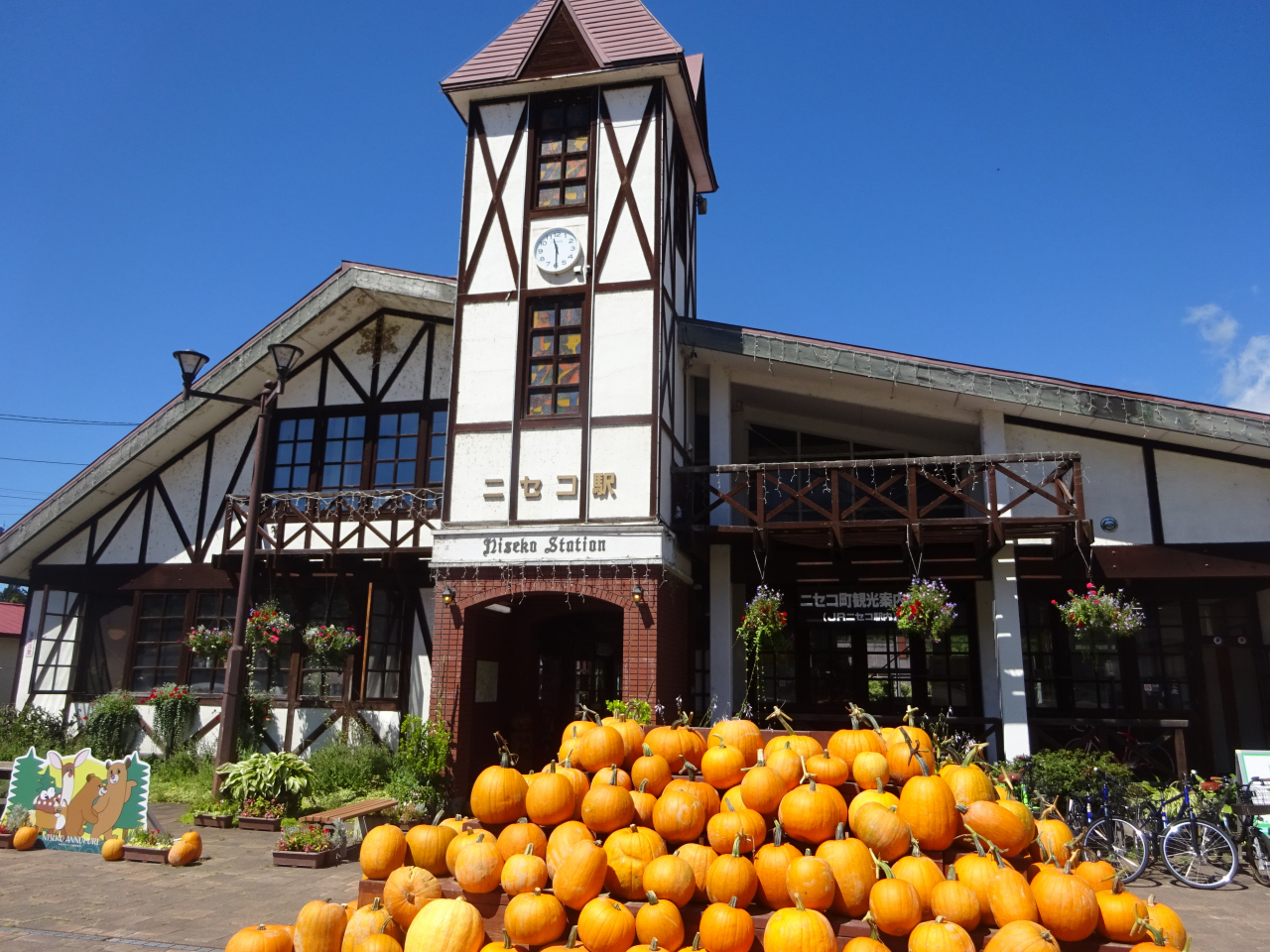 駅前にはなぜかかぼちゃが積まれていました。とってもおしゃれで、駅の雰囲気ともあっています。