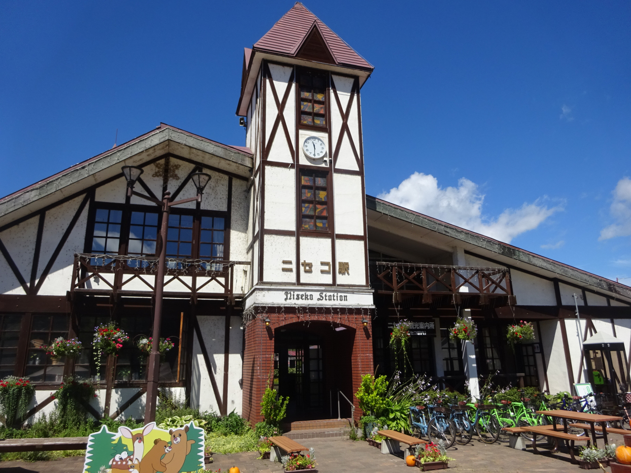 山小屋風の駅舎があります。観光案内所もあり、ニセコの玄関口です。