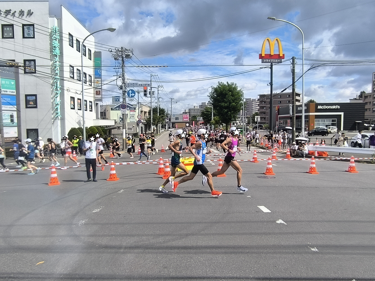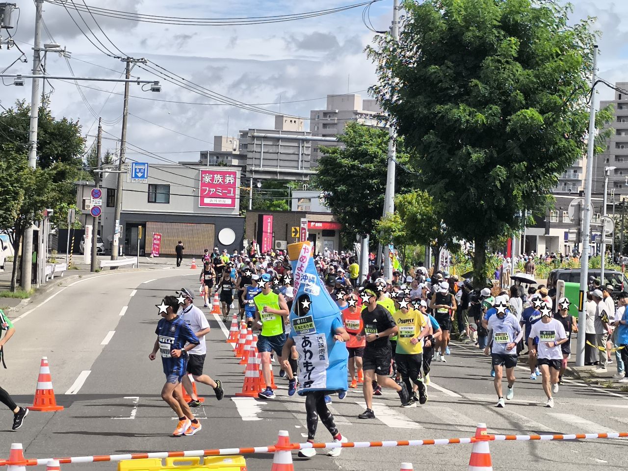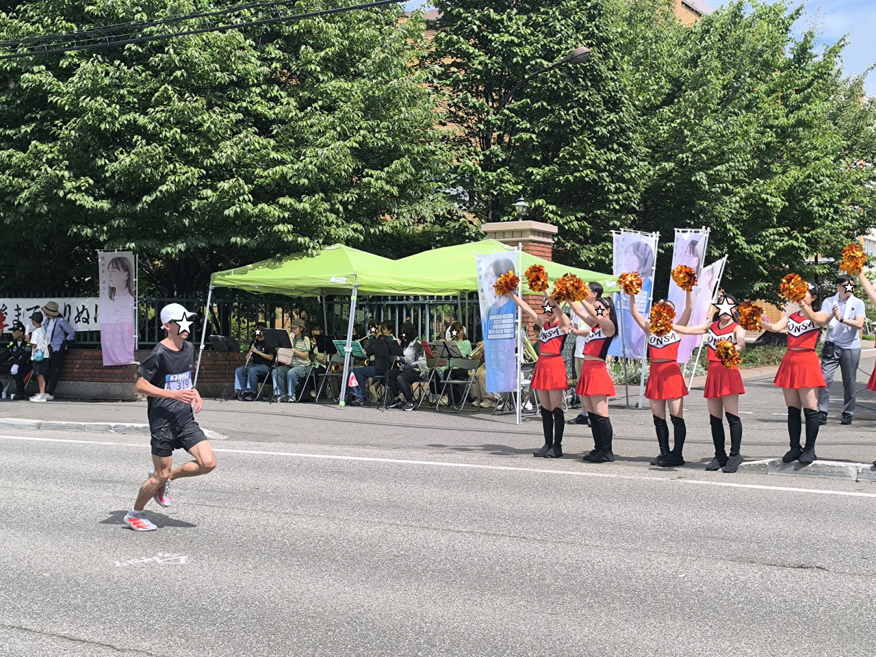 コースを見渡して、応援に良さそうなのは、行きと帰りで2度応援できる新川通り沿いや、緑が多くて日陰で涼める北海道大学構内のほか、コンビニなどお店が近い場所が良いと思いました。