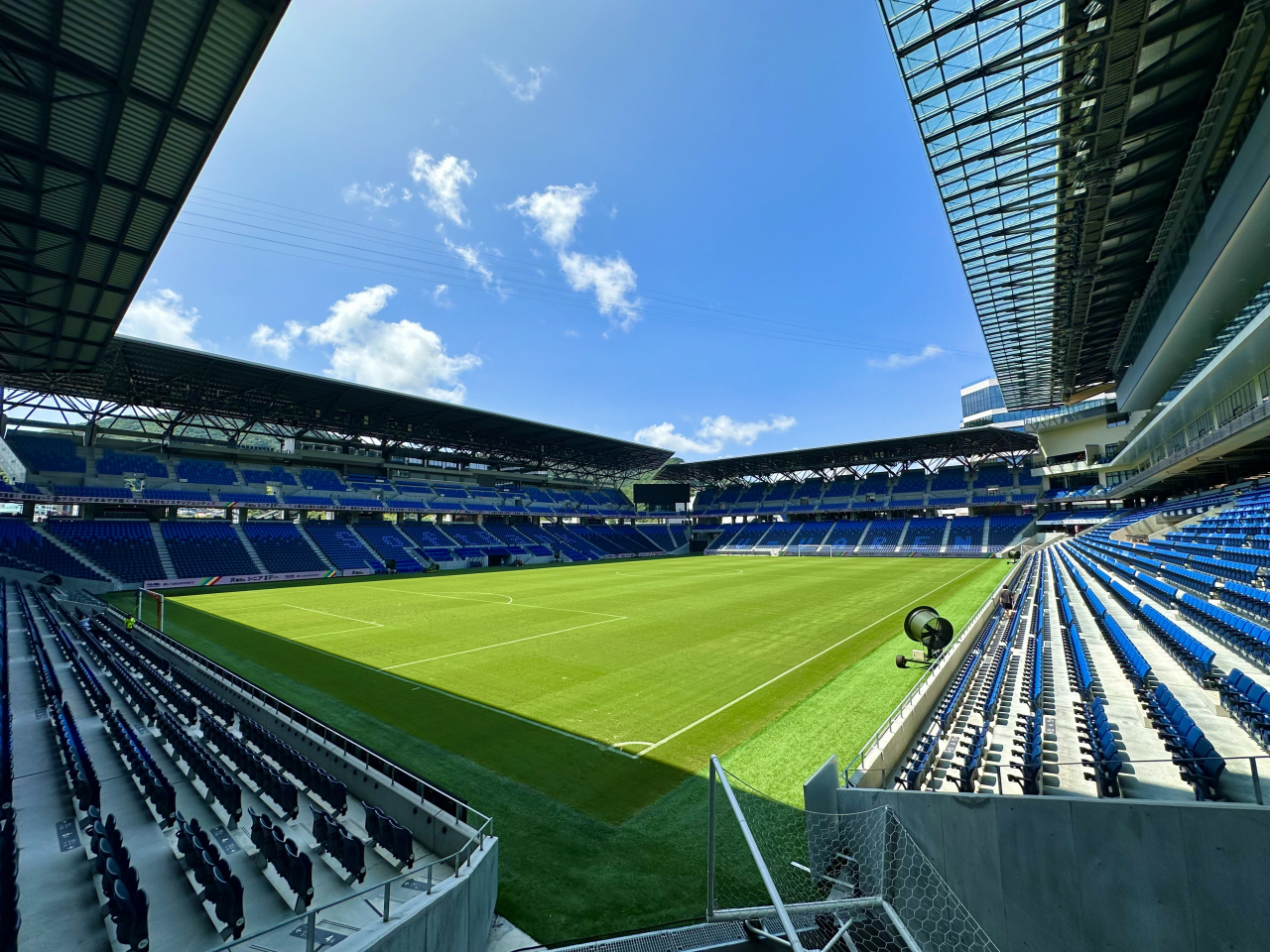 ここは、野球ではなく、収容人員2万人のスタジアムで、ジャパネット傘下のサッカーJリーグ:「V・ファーレン長崎」のホームスタジアム…名前も長崎らしく「ピーススタジアム」。