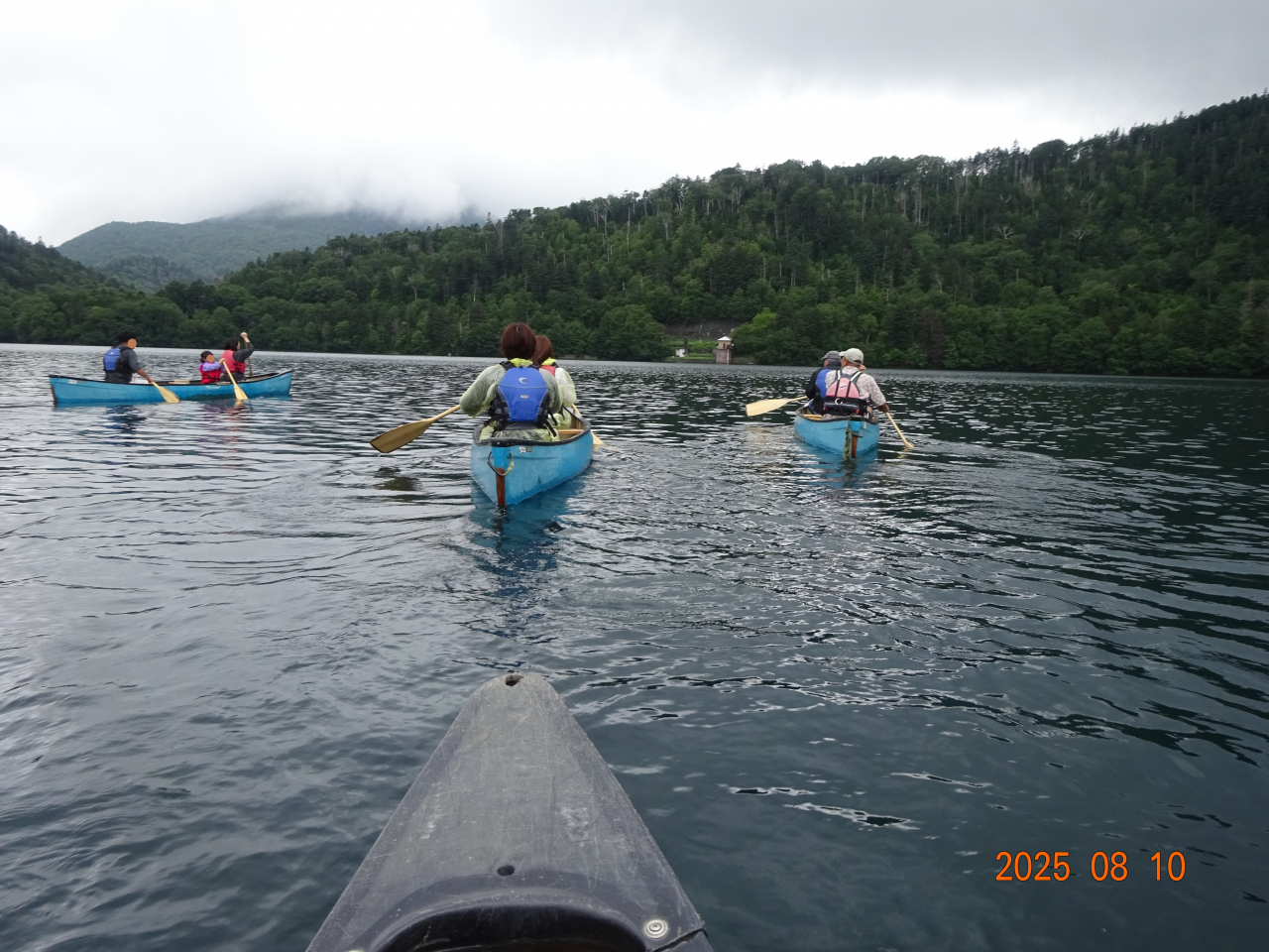 私たちはここで然別湖を行くカナディアンカヌー体験をしました。すぐ近くの岸辺で漕ぎ方の練習をしてから、湖に出ます。インストラクターさんたちは皆さんユーモラスで、親切に教えてくれました。