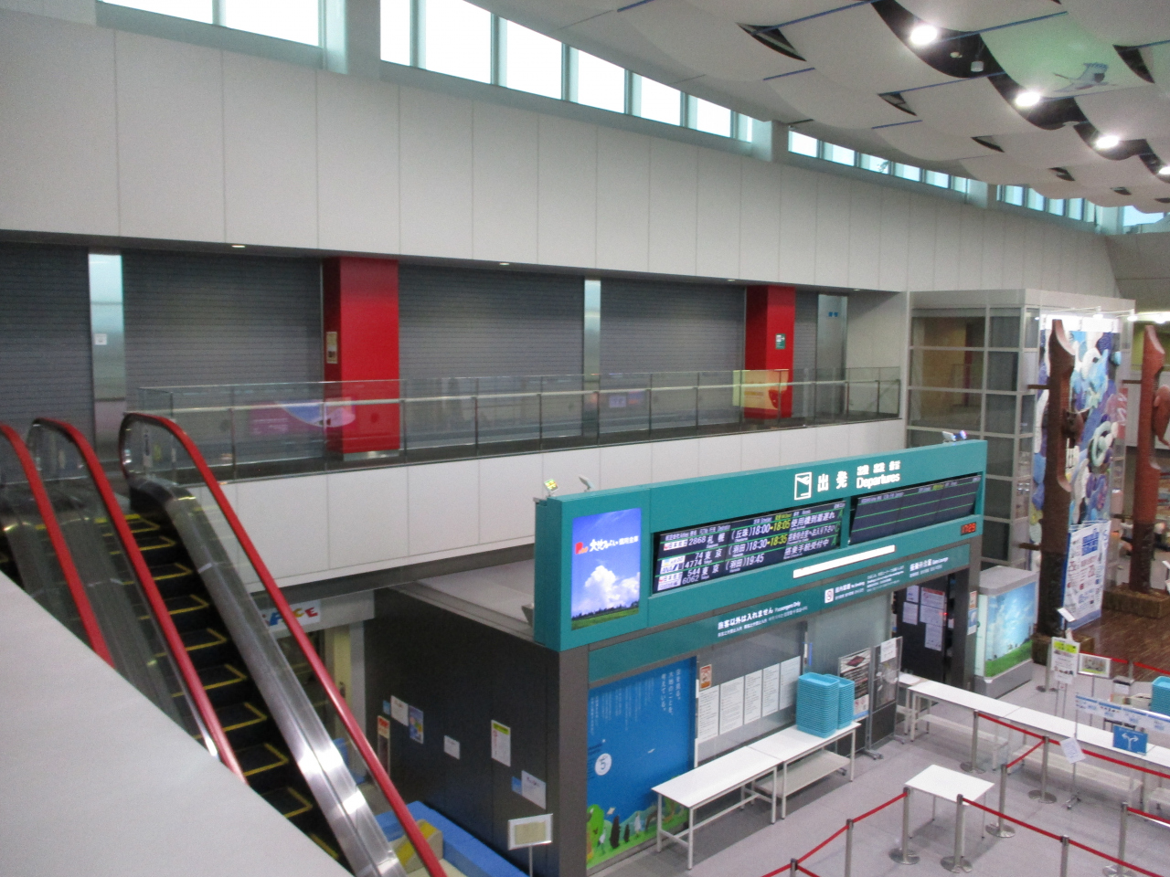 釧路空港を利用すると、3階の飲食店フロアがリニューアル工事を行っていました。3階に3軒ほど飲食店がありましたが、一般エリアに食事できるお店がありません。おつまみとお酒が飲食できる臨時のお店が1軒ありましたが、あとは制限区域内のANAフェスタで売店飯しか食べる施設がありませんした。