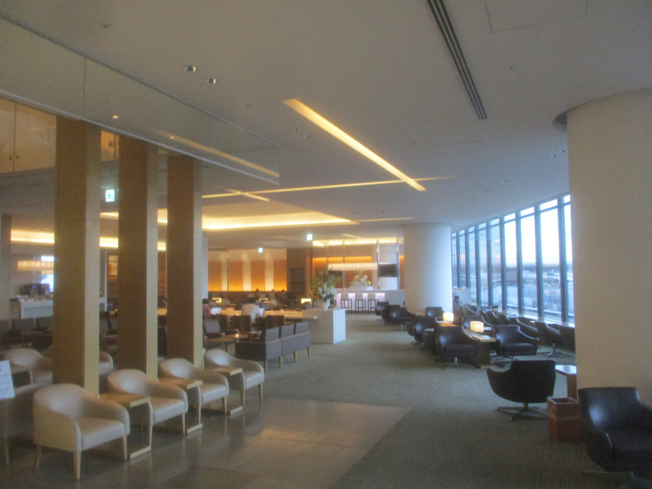 成田空港国際線 JALサクララウンジに入り、最初にレイアウト図でラウンジ内の配置を確認しました。エントランスから入ってエスカレータを降りた2階がラウンジエリア、ラウンジ内にあるらせん階段を上った3階がダイニングエリアと区分されていました。