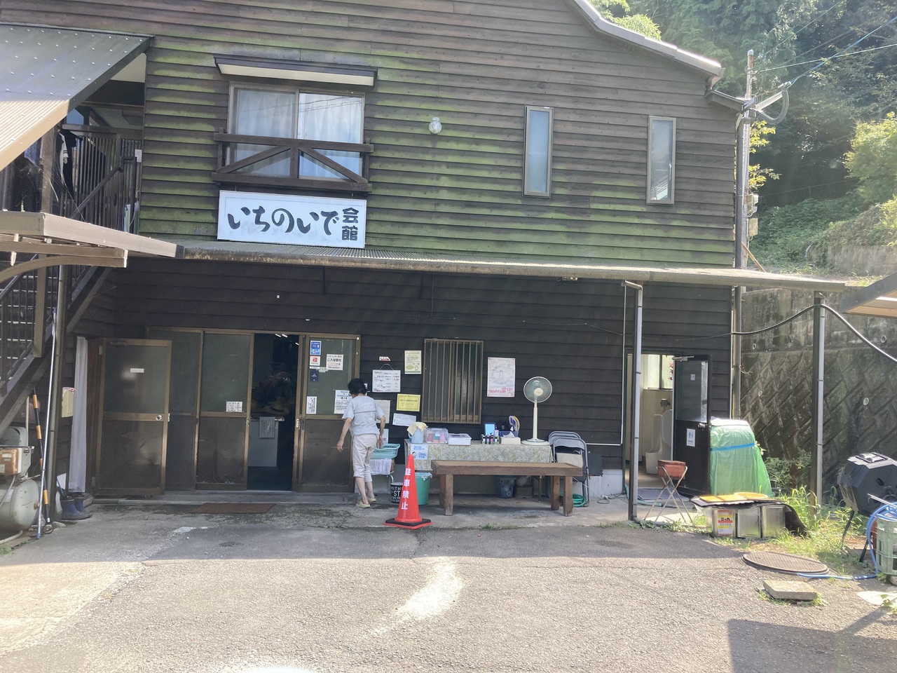最寄りのバス停から川までは平たんだが、残り250メートルの標識からは、超急坂が続く。36度の気温の中、汗だくの中、たどりついた先には質素な建物。