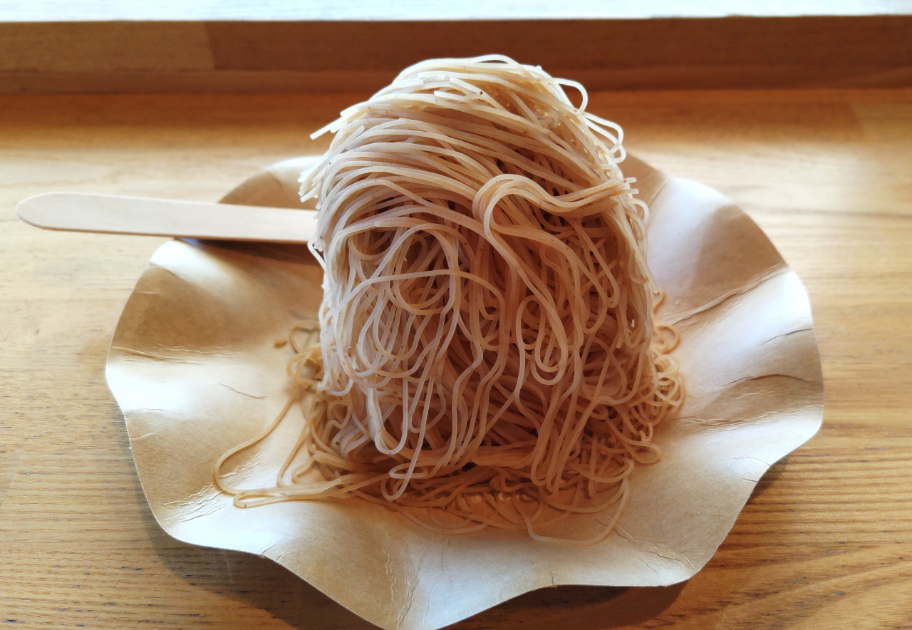 ミルク味の里美ジェラートと生クリームの上に、細長く紐状に絞った栗ペーストがたっぷりとのっています。