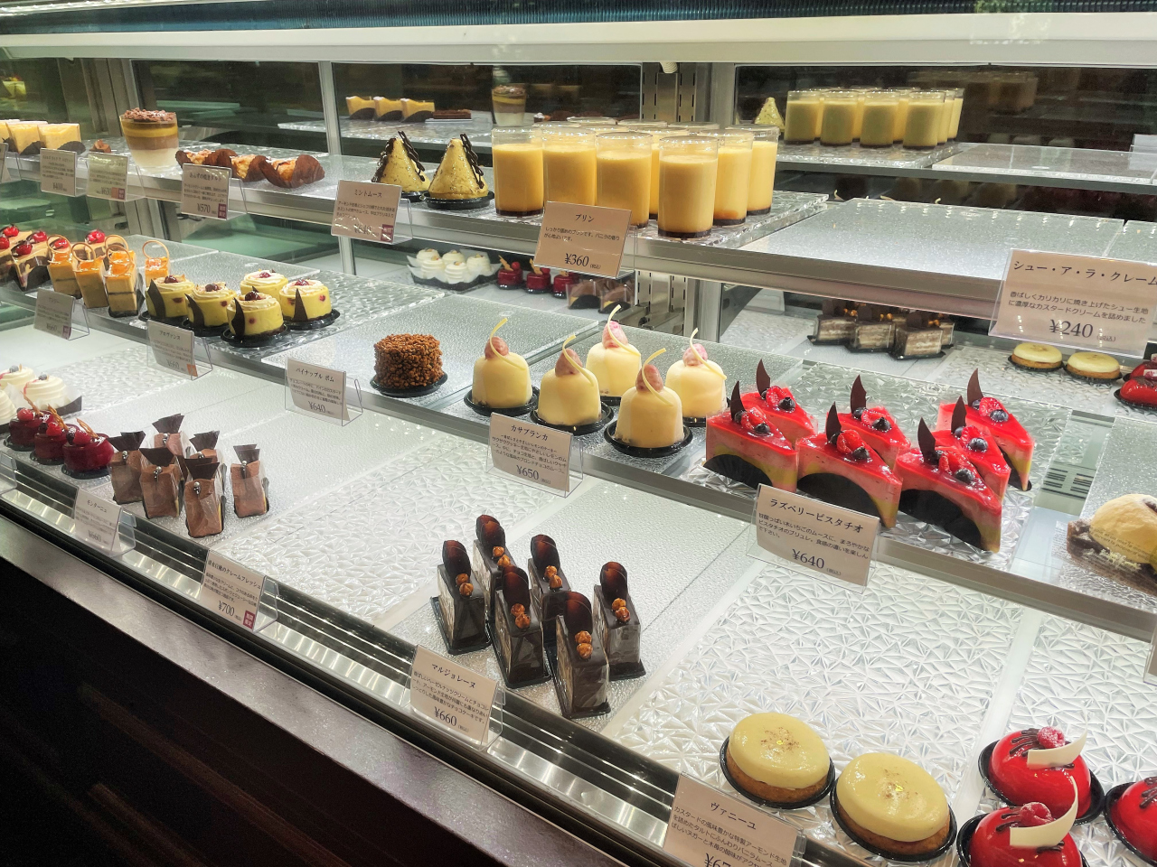 ショーケースの中には綺麗なケーキがズラリ、焼き菓子やチョコレートも並んでいます。