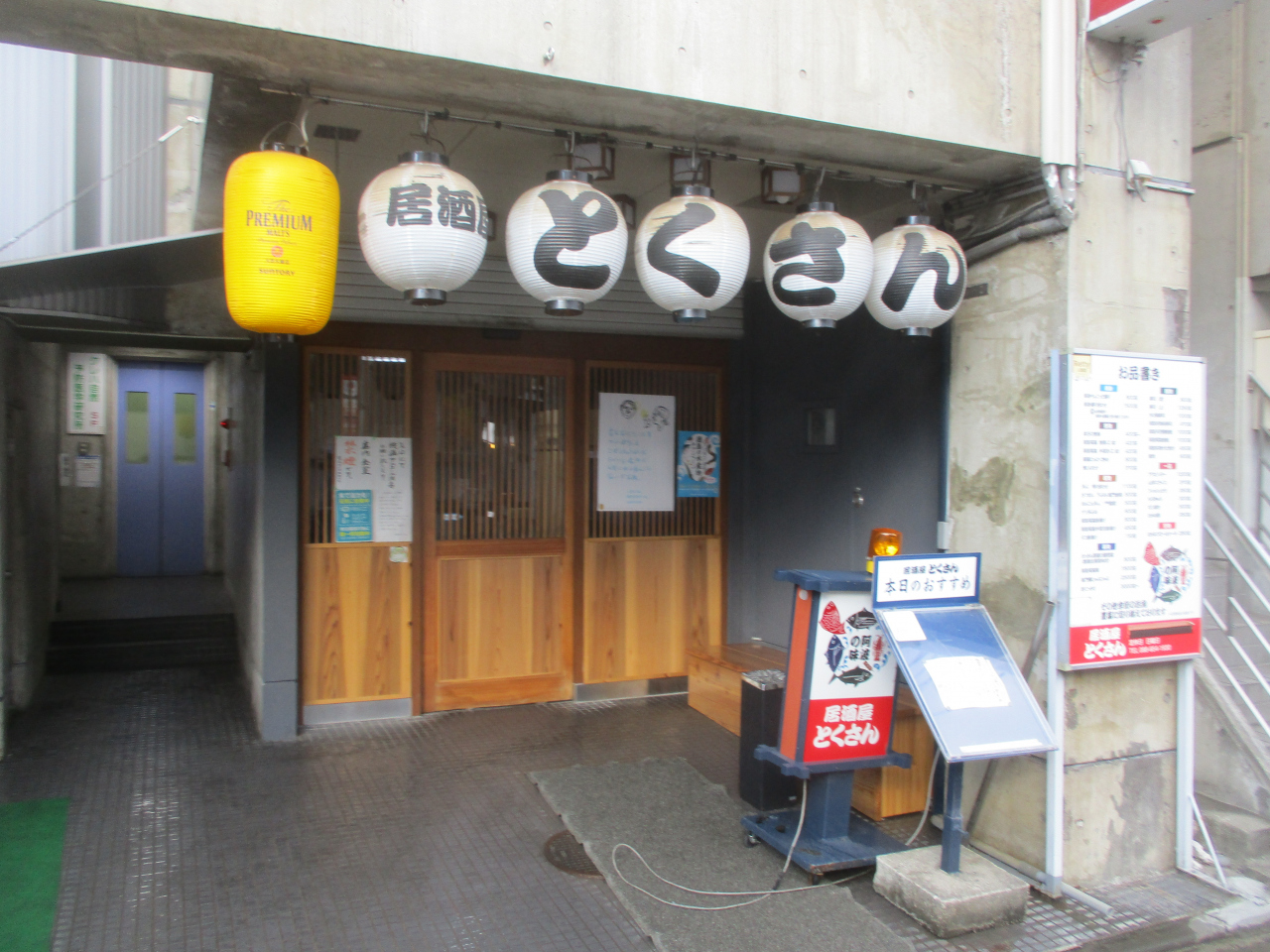 とくさんは徳島駅から歩いてすぐのところにあります。海鮮中心のメニューでしたが、地のモノのメニューである阿波尾鶏のから揚げ、フィッシュかつもありました。また、徳島の地酒も充実していました。1階は昭和の居酒屋の雰囲気で、2階は広い座敷で団体の宴会にも使えそうでした。
