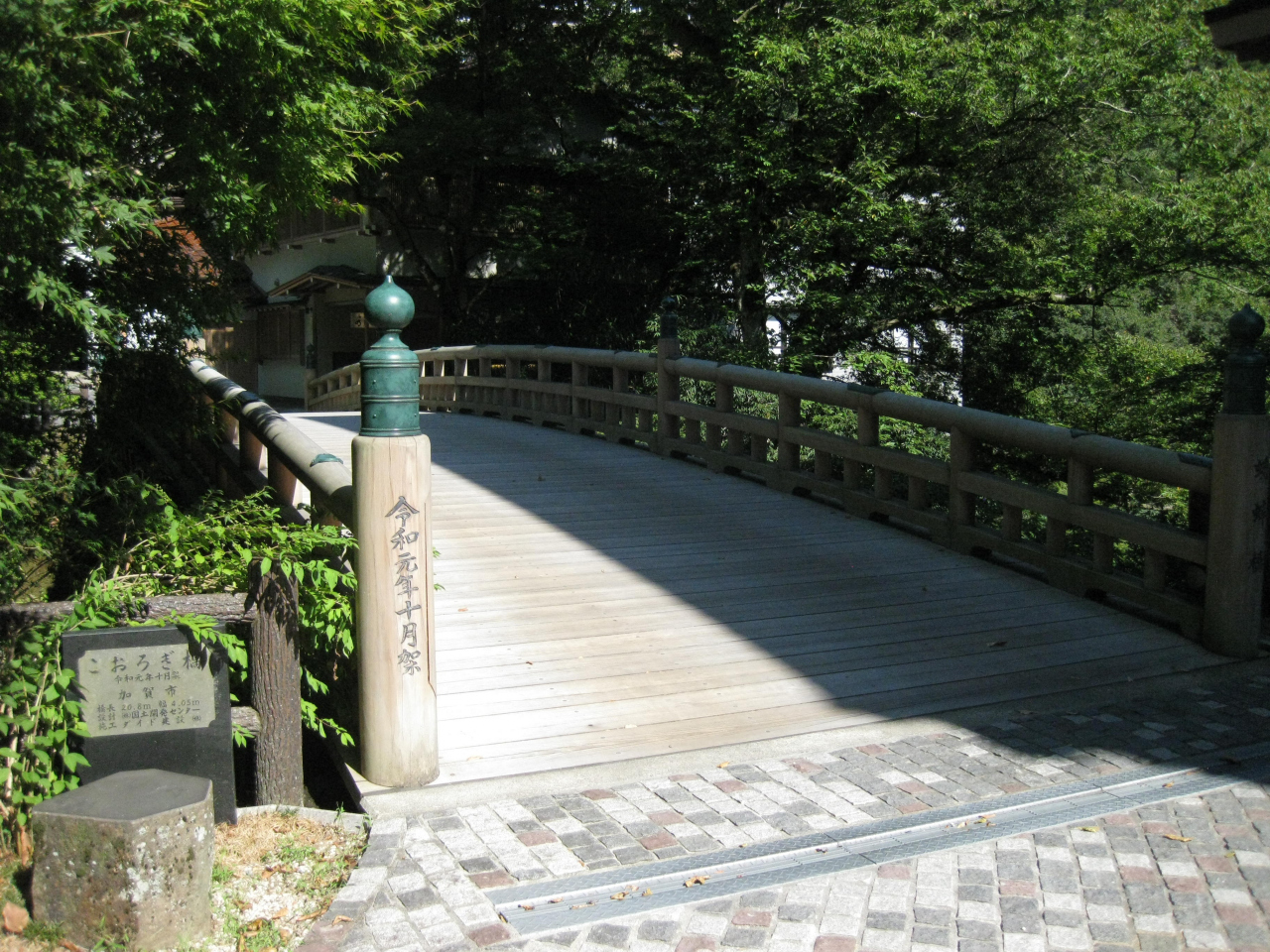 鶴仙渓に架かる橋です。少し離れた場所に20台ほど停められる市営駐車場があって便利です。橋までの道は車一台がやっと通れる狭さ。気を付けて歩くのがいいです。白っぽい総檜造りの趣のある橋は、いわゆる太鼓橋ほど丸さが極端ではないです。車も通れる橋になっています。橋の上から眼下に見える鶴仙渓のせせらぎが、耳に心地よく聞こえるだけでなく、目にもやさしく映ります。紅葉の時期になれば、きっと大勢の観光客で賑わうことでしょう。