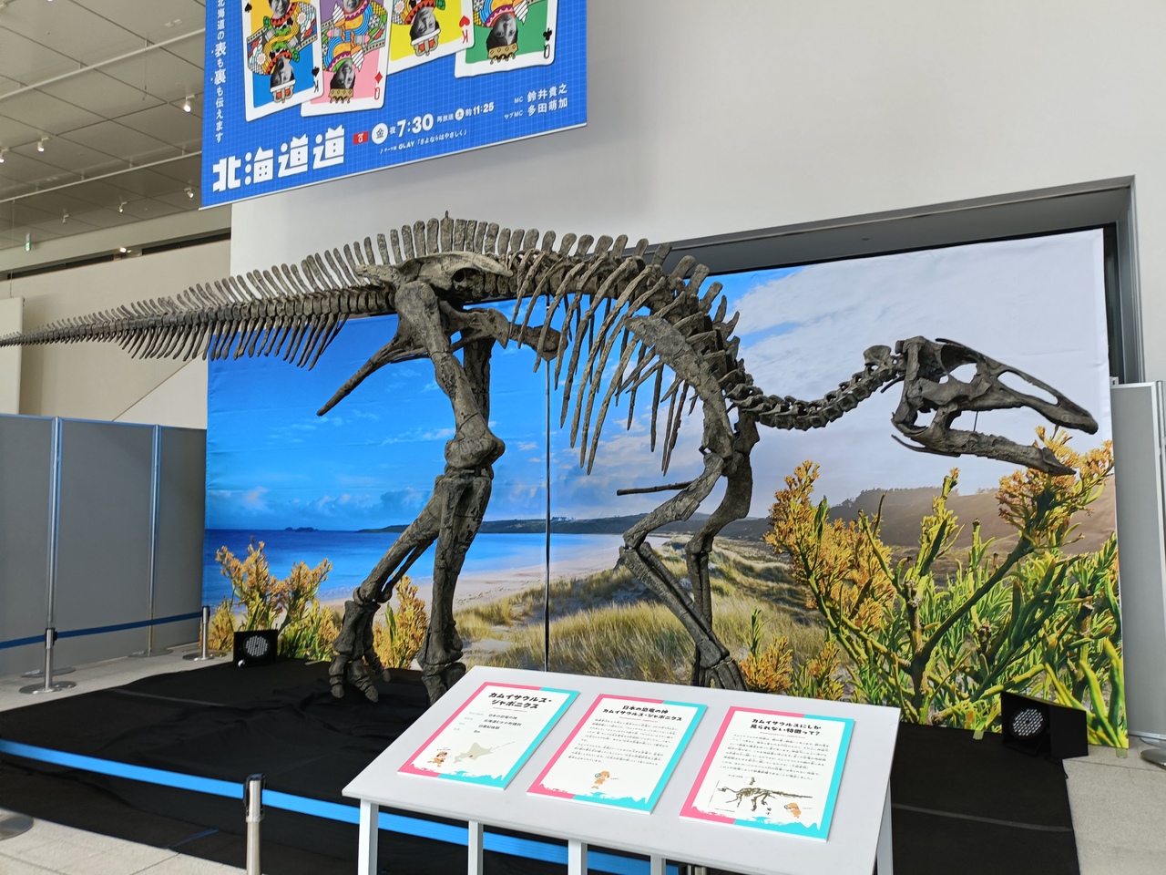 カムイサウルス全身組立骨格を見に行きました。平面的に並んだものと違います。無料見学記念グッズもありました。公開期間中にトークショー他の開催もあるので、お出かけ前に調べて行くといいでしょう。お隣のヤマダ電気で日用品購入し、駐車場利用しました。*興味深い方は、むかわ町穂別博物館見学もオススメです。