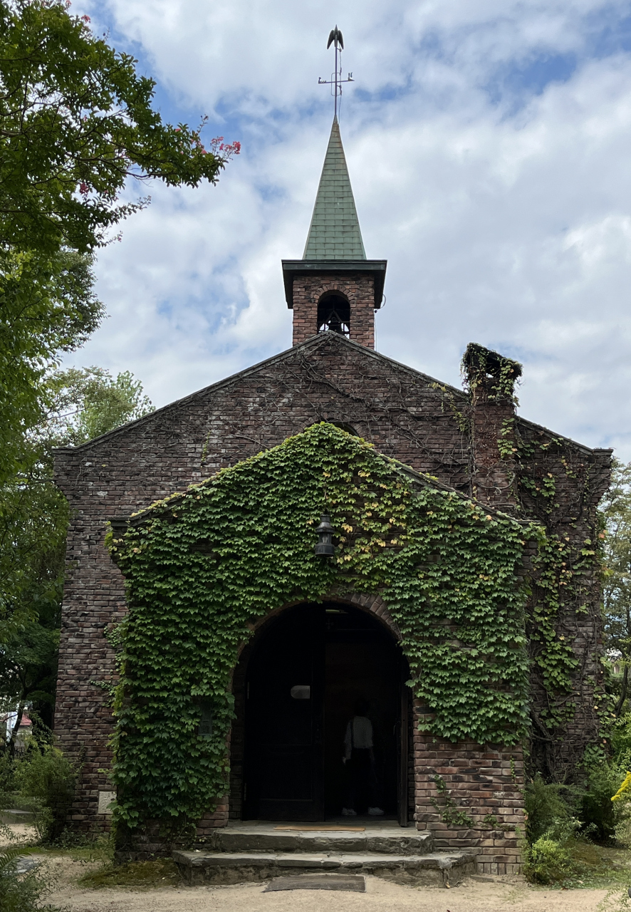 穂高駅から徒歩7分ほど、赤いレンガ造りの教会風の建物に、蔦が絡まる、素敵な建物です。日本に近代彫刻の息吹をもたらした、安曇野生まれの彫刻家荻原守衛(碌山)の作品と、彼の関係者の作品が4つの建物に分かれて、展示されています。入館料は900円、当日なら再入場が可能です。冷房が効いたグズベリーハウスの建物内では、彼の作品や建物についての説明DVDが繰り返し流れており、ここで予習をしてから作品を鑑賞すると、その作品の背景が分かって、理解が深まります。