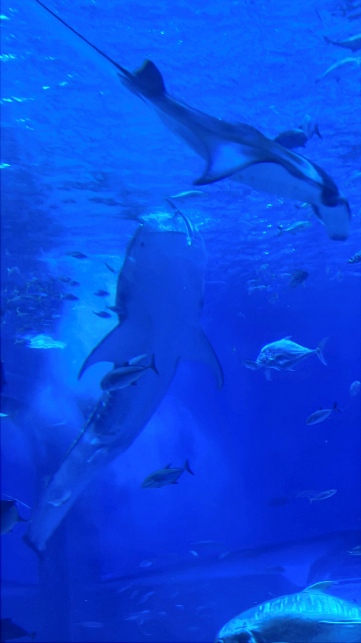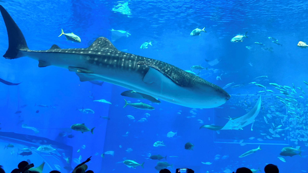 沖縄の海を再現した『沖縄美ら海水族館』"ジンベイザメのジンタ"がぐるぐると泳ぐ(・ヮ・ノノ゙
