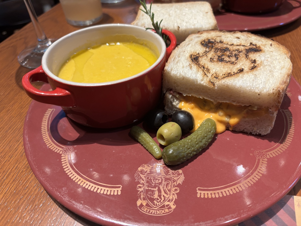 寮にちなんだチーズトーストがメインで、はさんであるものが寮ごとに異なります。内容で選ぶか推しで選ぶか悩むところ(笑)わりとボリュームあります。
