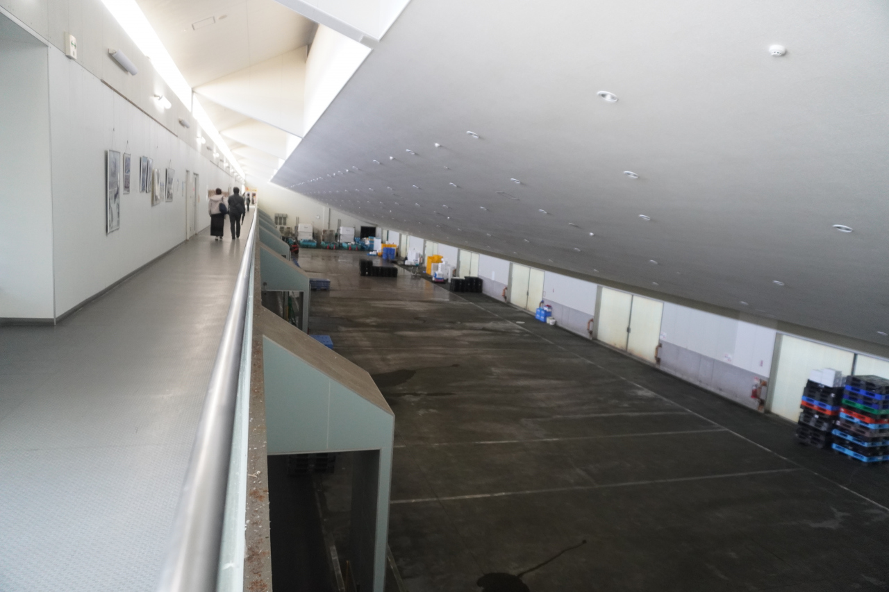 沼津魚市場INOは、市場のセリ場を見学できる専用通路や展望デッキ、食堂などが併設された複合施設。そういう意味では沼津港の中核施設なのですが、一番賑やかな港八十三番地辺りからだと少し歩くことになるので、観光客の数は少なくなります。やpp里、セリの時間じゃないと寂しい感じは否めません。