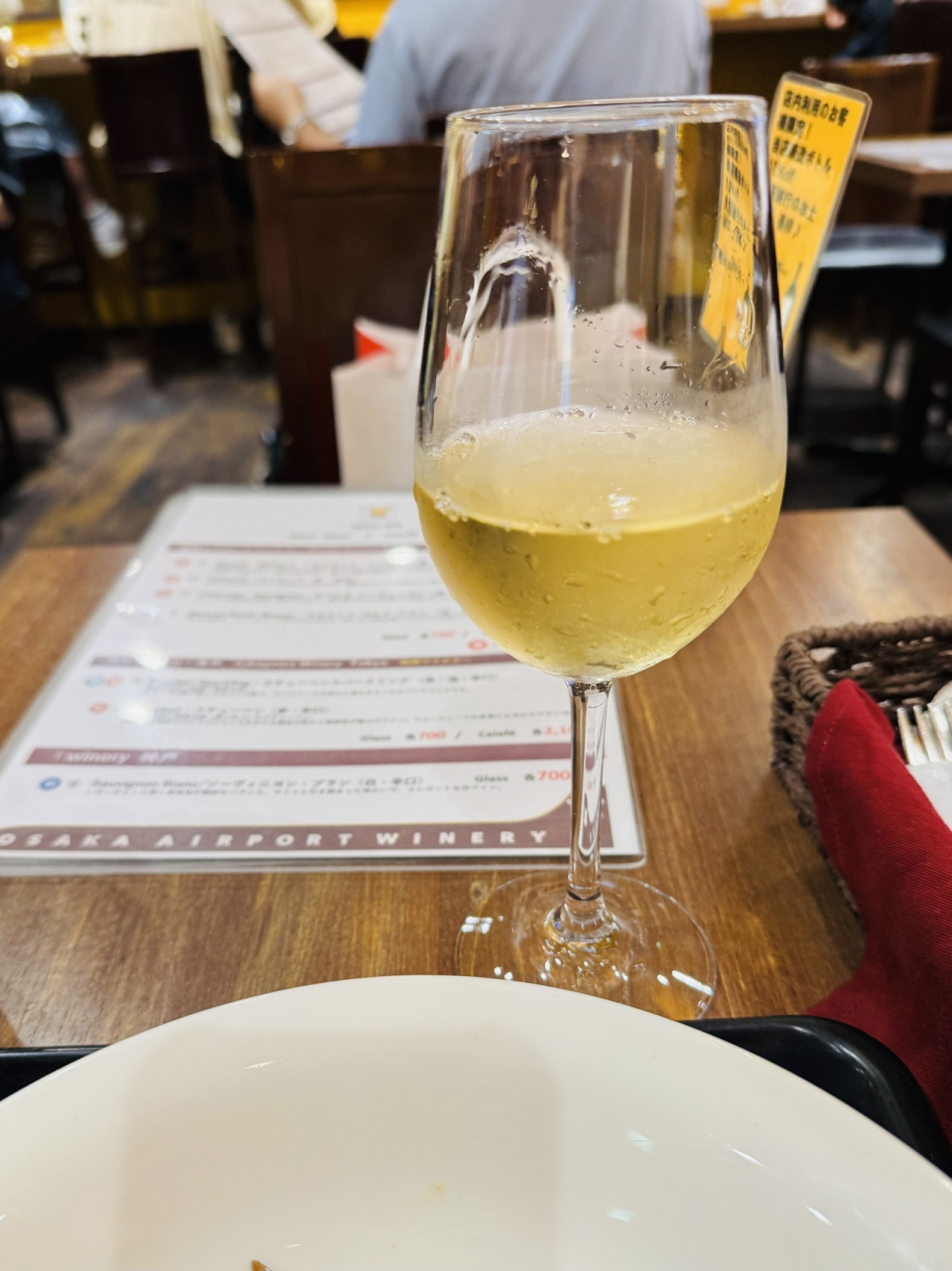 伊丹空港でプライオリティパス利用できるお店でワインが楽しめます。食事ができ、ワインの種類がそれなりにあります。平日夕方利用で直ぐ案内されましたが店内は広くないので時間帯によっては混雑しそうな印象でした。食事は肉か魚か前菜盛り合わせ?から選べます。魚をチョイスしたら鯛料理で美味しかったです。ワインは神戸の白が美味しかった。泡は不思議なテイストでした。