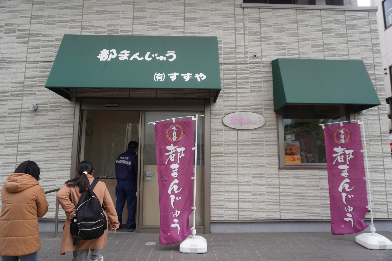 都まんじゅうすずやは、茅ヶ崎駅の北側。小さなお店ですが、あの白餡の都まんじゅうのおいしさは誰でも知っていますからね。この日もお客さんがポツポツやってきて、やっぱり地元の人気は明らか。私も街歩きで疲れた時は重宝します。