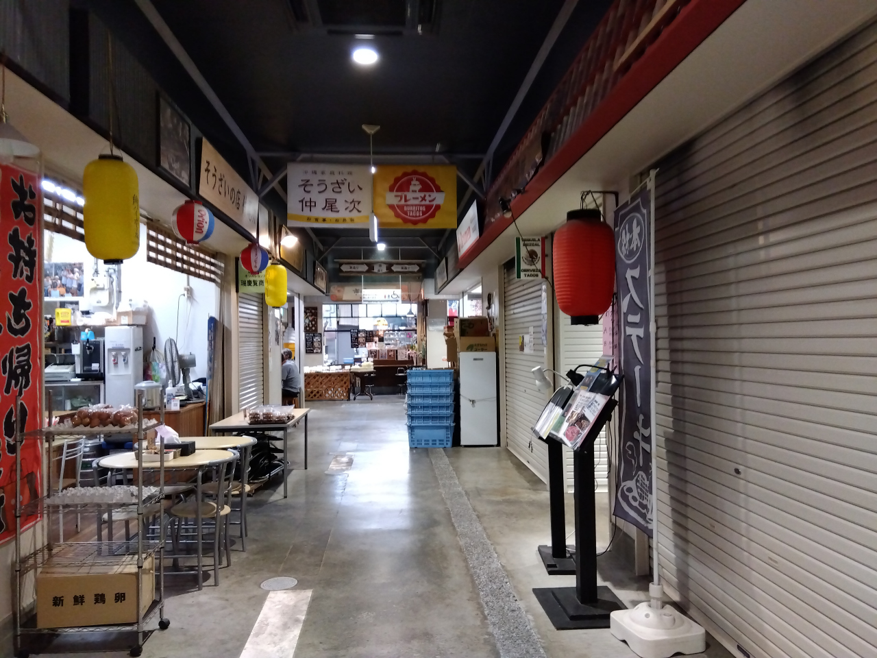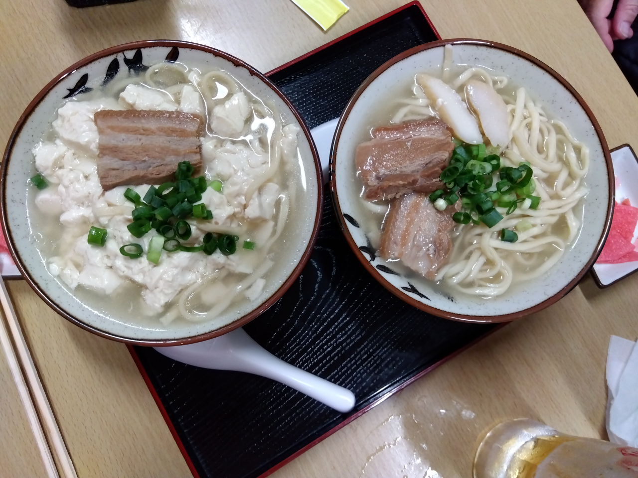 朝7時過ぎ、唯一営業していた食事処「そうざいの店仲尾次」で、沖縄そばとゆし豆腐そばを食べました。店頭には、自家製の「てびち」と「くんち肉みそ」が販売されていました。