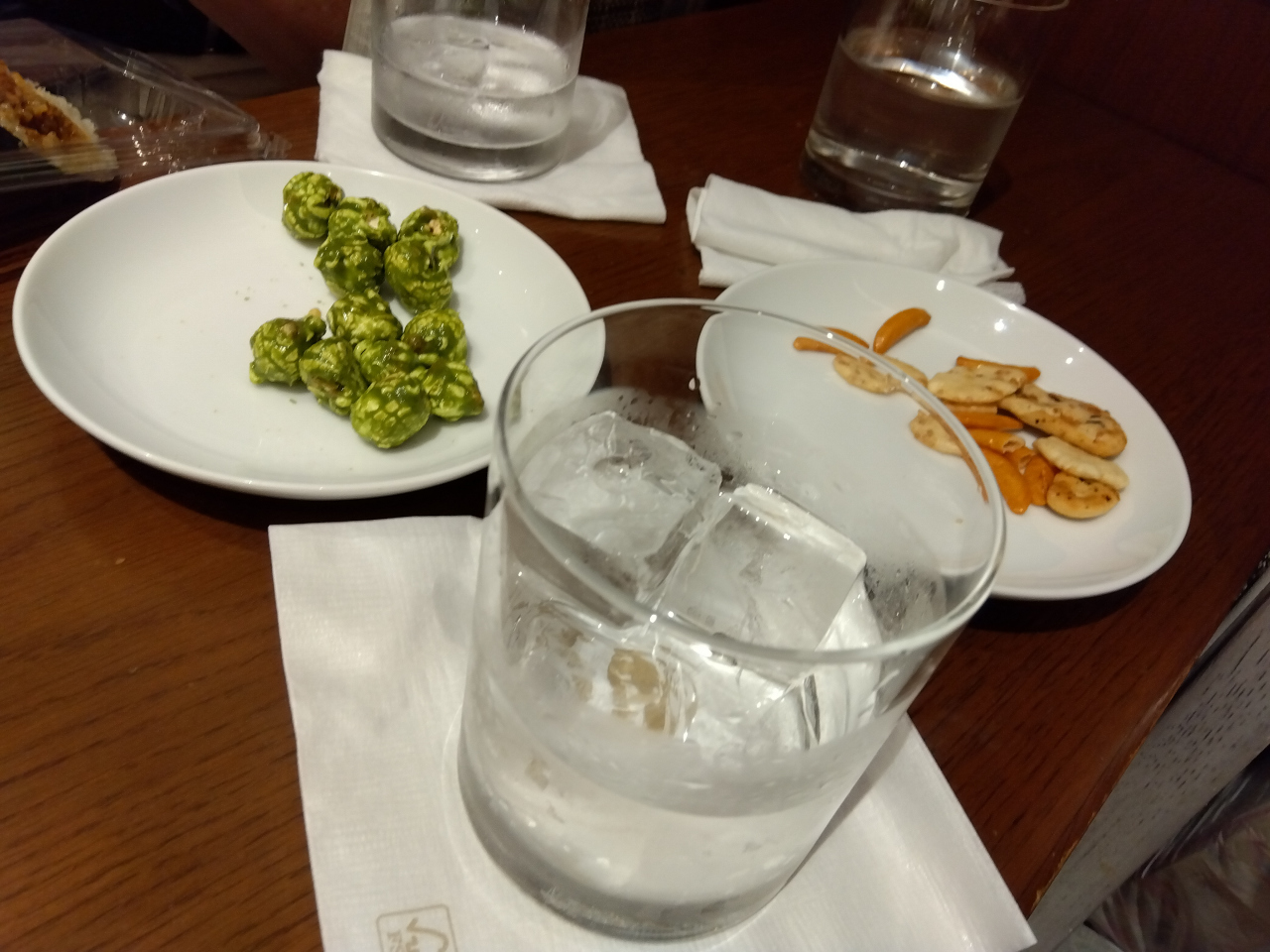 「オリオンビール」にも「泡盛」にも甘めの「ポップコーン」がよくあいました。