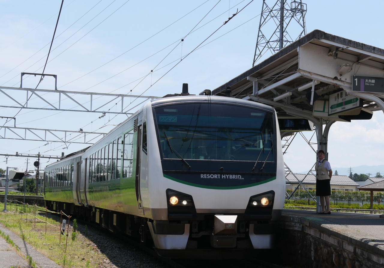 平成の大合併により安曇野市となり、安曇野市役所は旧豊科町役場に置かれたため、安曇野市の市の代表駅は豊科駅に譲りましたが、穂高・安曇野観光の入口駅でもあり、利用者数は1日2000人以上と豊科駅より多いです。
