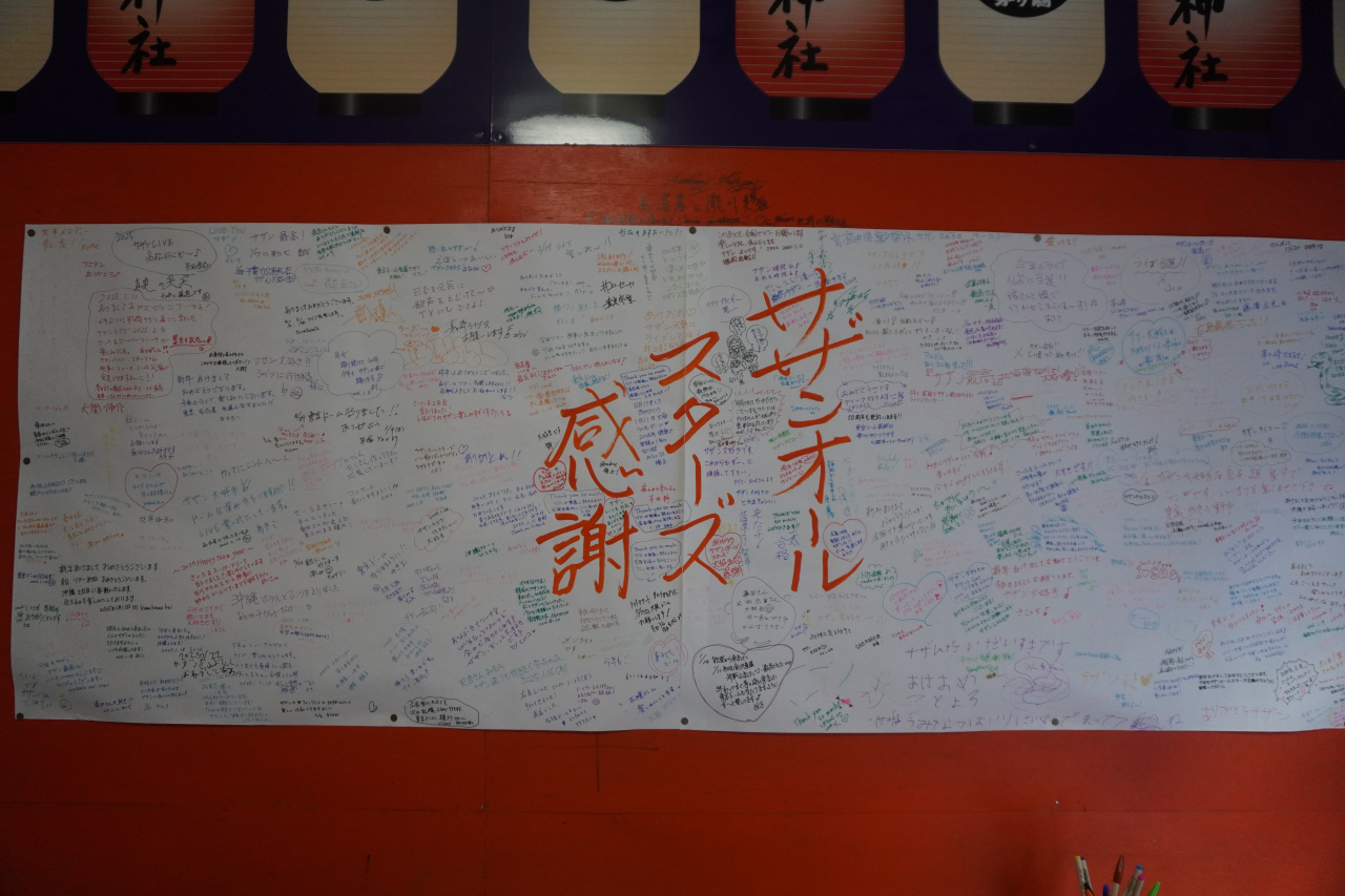 茅ヶ崎サザン神社は、サザン通り商店街のなかほどにあるサザンオールスターの聖地的神社。なんちゃって神社ではあるのですが、建物に入ると「サザンオールスター感謝」の寄せ書きがあって、ファンの思いがそれぞれ綴られていました。私も同じ思い。今となっては唯一無二。ほかに代わるもののない足跡を残したバンドだと思います。