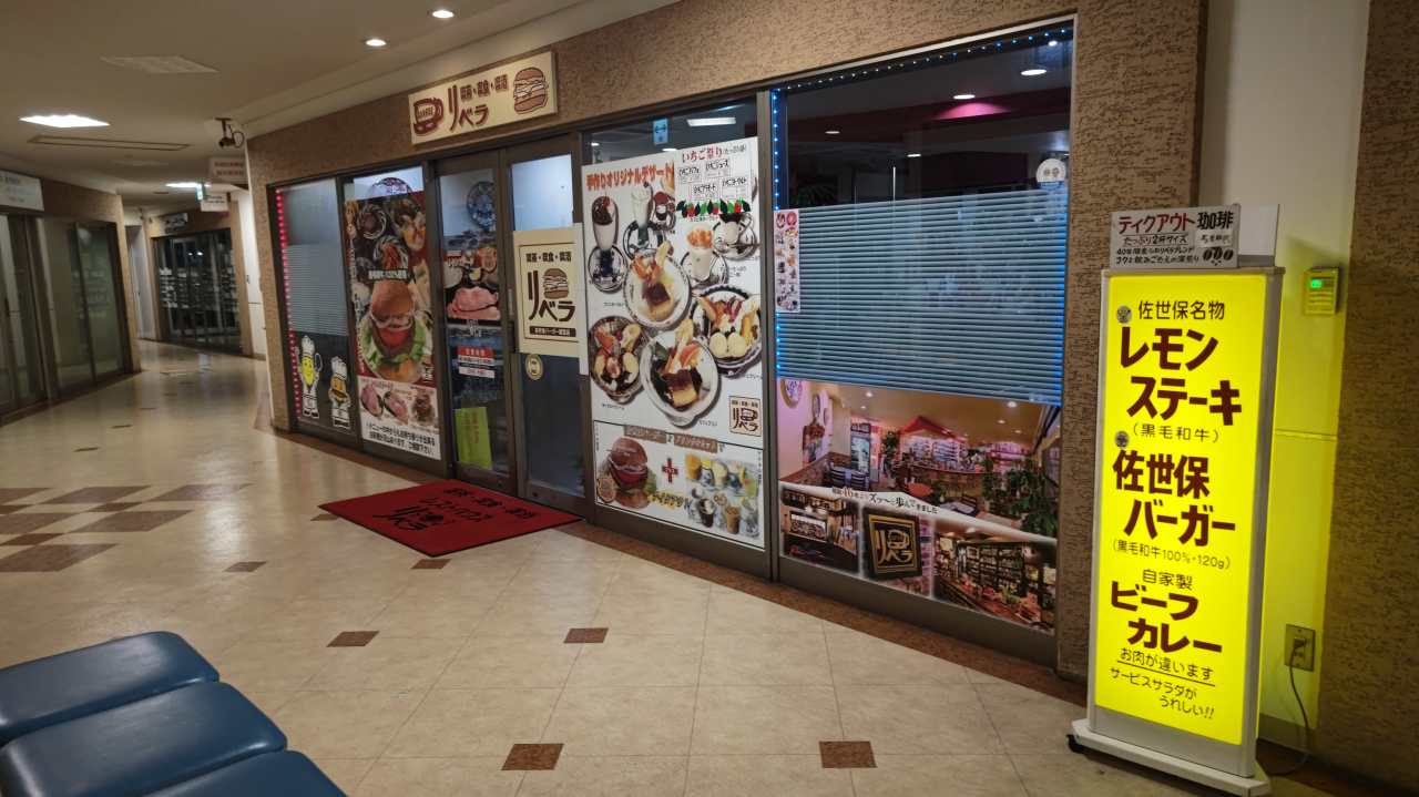 佐世保バーガーやレモンステーキなど、佐世保グルメが一通り揃っていて、営業時間22時まで…と、ほぼ100%、観光客の方に向いたようなお店です。