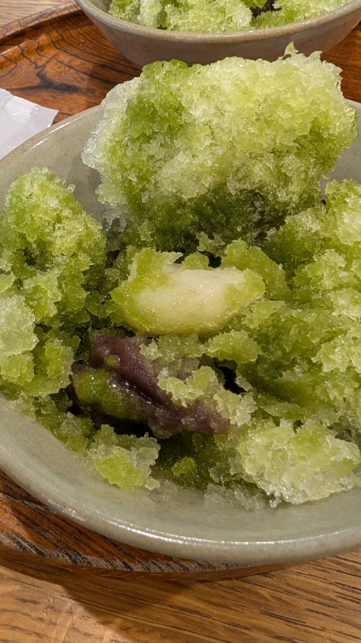 おはらい町を食べ歩きしていたので軽く、のつもりでシェアしようかと思っていましたが結局一人一杯、見た目多そうでしたが甘さ控えめの抹茶蜜、氷と食べることで餡も甘ったるくなくてサッパリと食べられました。
