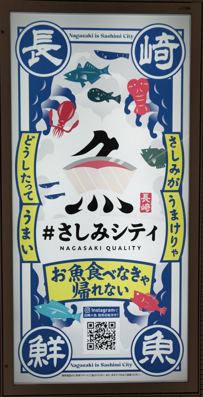 長崎駅構内で「さしみシティ」のポスター見つけ、気になり、同じく駅構内の観光案内所で「さしみシティ」の写真を見せながら、「この辺りで、これに参加しているお店、ありませんか?」と聞くと、「反対側のかもめ市場の奥の方にありますよ」と教えてもらい、ランチでお邪魔したお店です。