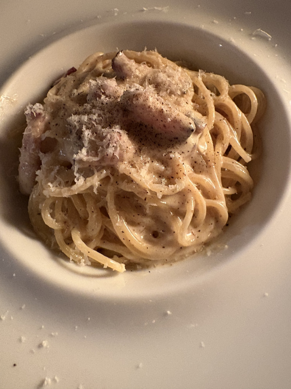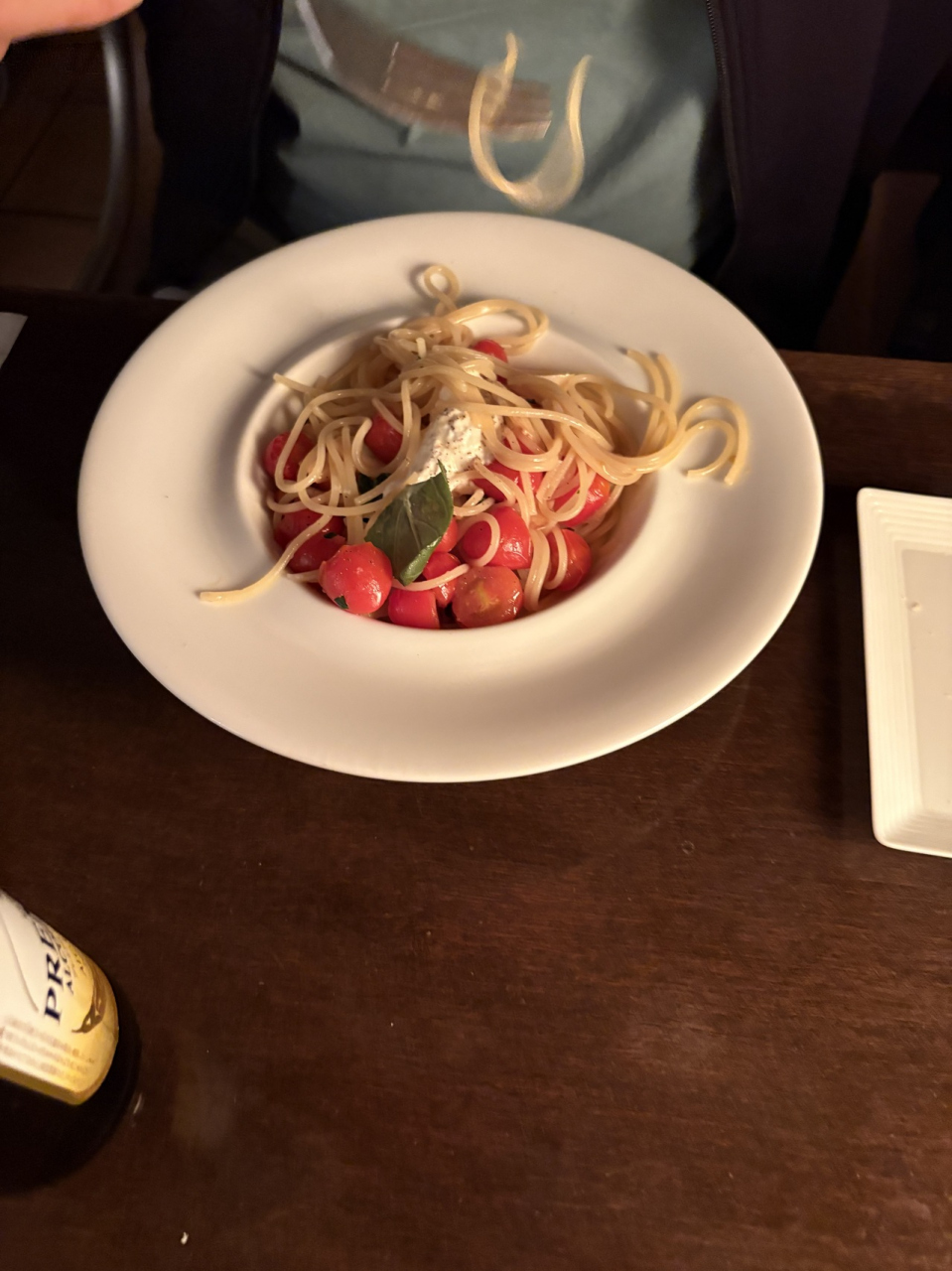 夫婦でカルボナーラとミニトマトが沢山入ったペペロンチーノを とても美味しかった。