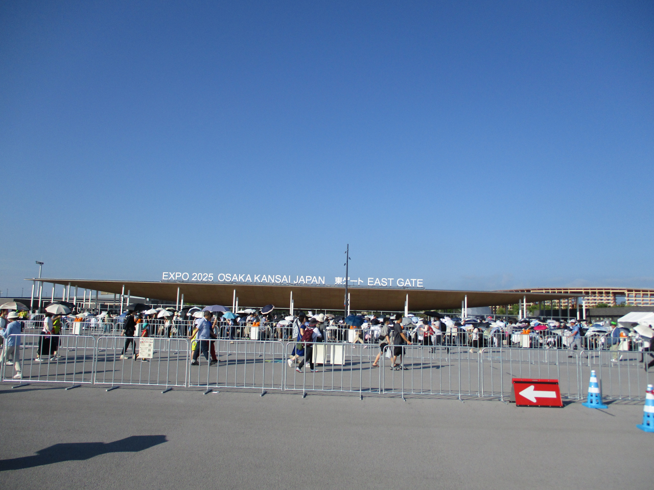 5月に来たときよりも明らかに来場者が増えている印象を受けました。気温が35度を超えるとても暑い日でしたが、パビリオンの中はエアコンが効いていたり、外には大型扇風機、ミスト発生装置、無料の飲料水設備があったりと万博側も暑さ対策をしてくれているのが分かりました。4月に中止になっていた航空自衛隊のブルーインパルスが15時頃、万博会場上空の飛行を行い、運良く会場内から見れました。暑くて過酷な見学でしたが、驚きと感動の連続でした。