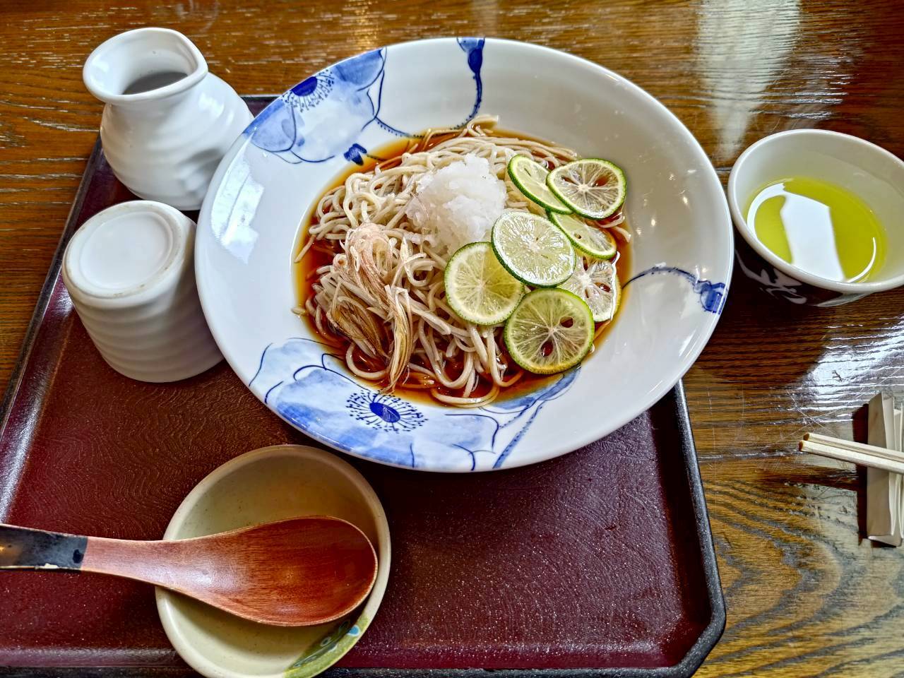 戸隠神社から離れますので、美味しいお店だと知ってくる方がほとんどだと思います。駐車場は7~8台分ありました。日曜日の11:40ごろ着きましたが10分くらい待ちました。12:00に入店したお客さんは、粗びき蕎麦は終了ですと言われていましたので、早めの入店が良さそうです。お蕎麦本来の味を感じられ、すだち蕎麦はさっぱりいただけました。天ぷらも熱々サクサクで美味しかったです。暖かいそば茶、冷たいお水がセルフサービスでした。