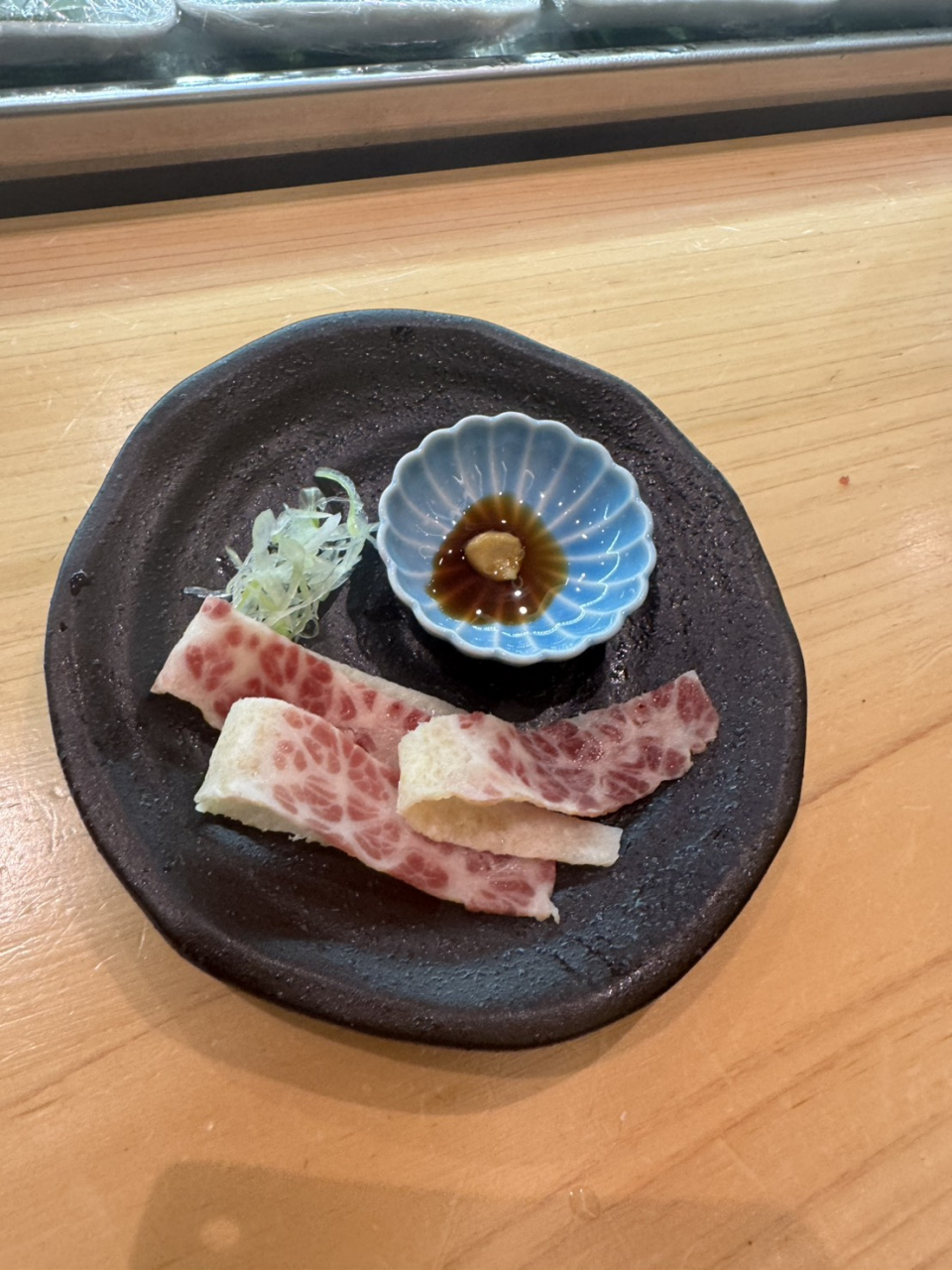 娘とその旦那、私の3人で予約。1人1万円のコースにしました。大将の説明も的確、ワンオペではなくツーオペなので料理が出るのに時間がかかることを最初から説明。とはいえ遅いと感じることはありませんでした。大将と楽しく会話しながら、久々日本でのお寿司を味わうことができました。