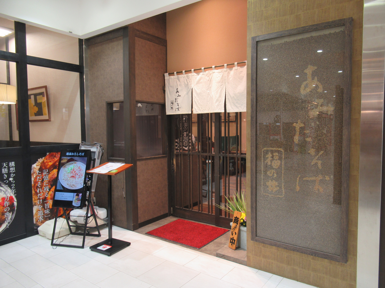 福井駅西口に建つハピリンの1階にあります。福井駅周辺散策の前に、早昼食で利用しました。ハピリンそばの福井市観光案内所で越前蕎麦を食べられる店として紹介されました。平日11時前でしたが、先客がいました。越前おろしそば並盛と、とろろそば小盛を注文しました。蕎麦は十割蕎麦で、青首大根の辛味おろしが効いたつけ汁です。辛味おろしにとろろの荒おろしが入ったとろろそばのつけ汁はマイルドな辛さでした。また食べたくなるこしの強い蕎麦です。