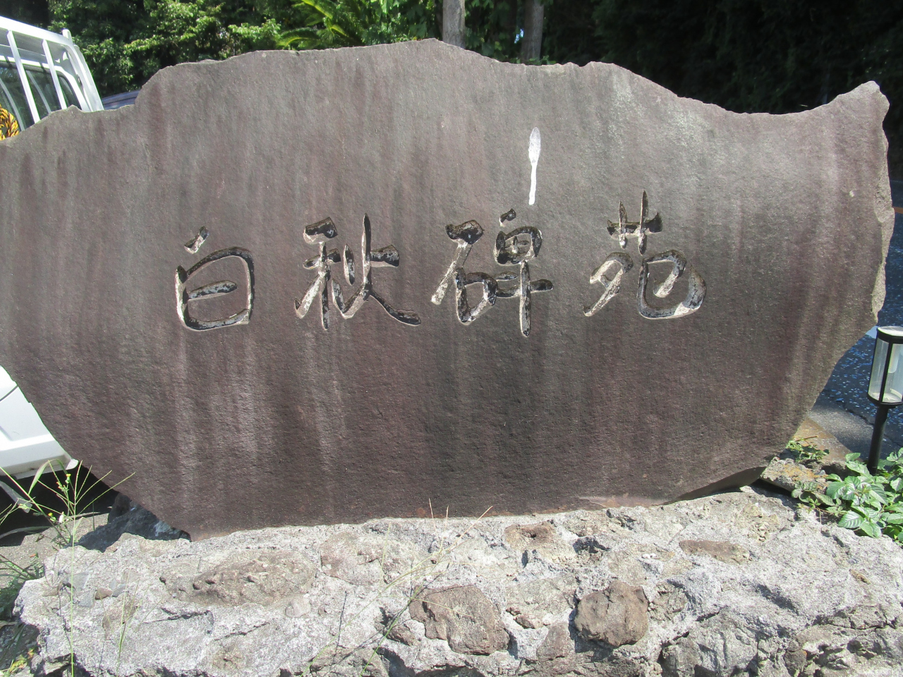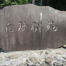 昭和24年7月10日、建碑が除幕され、高さ3メートル余、下太の帆型の根府川石で、城ヶ島の雨の一節の草書は白秋の自筆です。