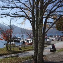 東照宮から竜頭の滝等に向かうバス道路は中禅寺湖畔にしばらく沿って進みます。で、そのバス道路と湖畔の間には遊歩道があったり、中禅寺湖で遊べる貸しボートの乗り場があったりして、長閑な雰囲気。この日は、秋の紅葉も見ごろで、日光は一番いい季節でした。