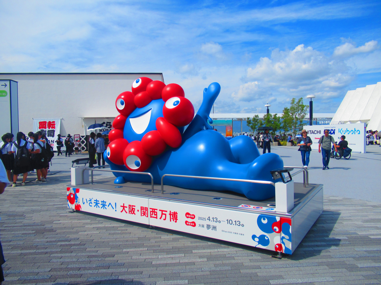 そしてミャクミャク人気がものすごかったです。驚きました。都内のオフィシャルショップでも売り切れが多くかったのですが、現地のオフィシャルショップは、会場外にあるものも混雑がひどくて入場制限していたり、売り切れが多く選べない状況でした。