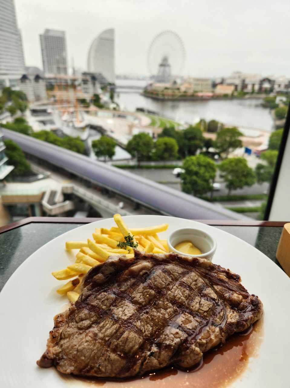 JR桜木町駅前、コレットマーレ6階にあるレストランです。17時までランチメニューがあるので、ブルク13で映画のあとに14時過ぎに寄ってみました。ラッキーなことに窓側のカップル席に案内されました。この日は曇りでしたが、みなとみらいの眺望が目の前に広がります。ランチはオムライス1300円、ステーキ2980円を注文。オムライスはデミグラスソースでとても美味しかったです。残念なのがステーキ、固くてナイフが通らないほどで、大きさも写真と違いました。付け合わせのポテトもカサカサで冷めてる、、、食事は残念でしたが、雰囲気は最高でした。10月3日 one battle after another を観たあとに寄る