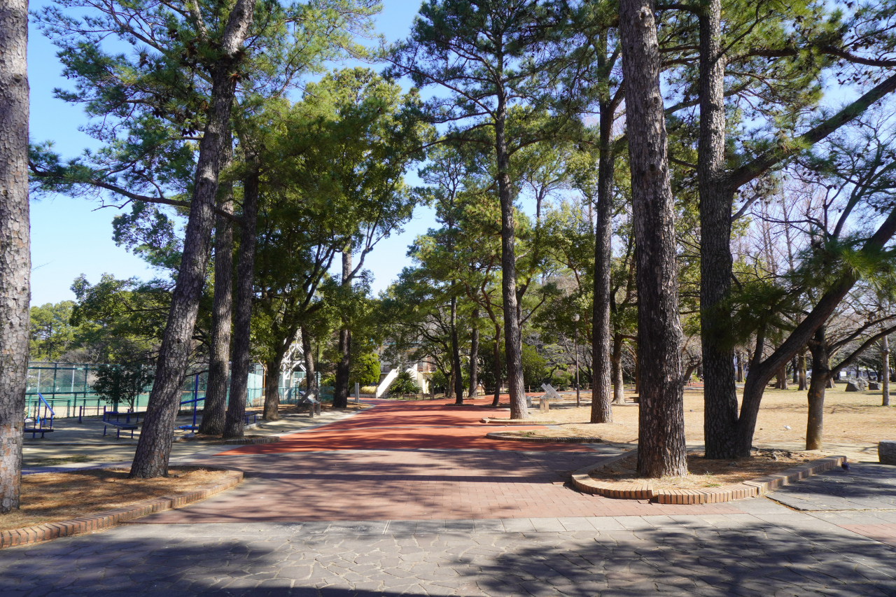 山王公園は、戦後間もなくの1949年に開園された老舗の公園。公園内の木々はそれなりに成長して、落ち着いた雰囲気があります。園内には、照明設備を備えた立派な野球場もあったりして、憩いのスペースのほか意外に施設が充実しています。