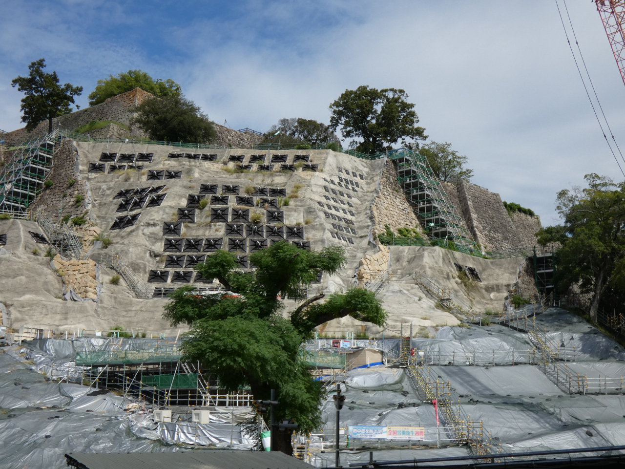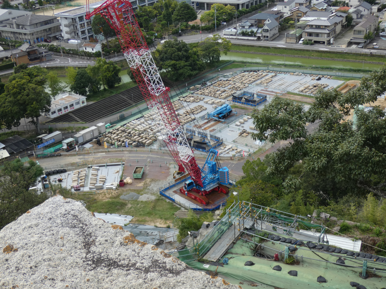 丸亀城特有の崩壊した高い石垣の災害復旧の最新技術を学べる丸亀城石垣復旧PR館