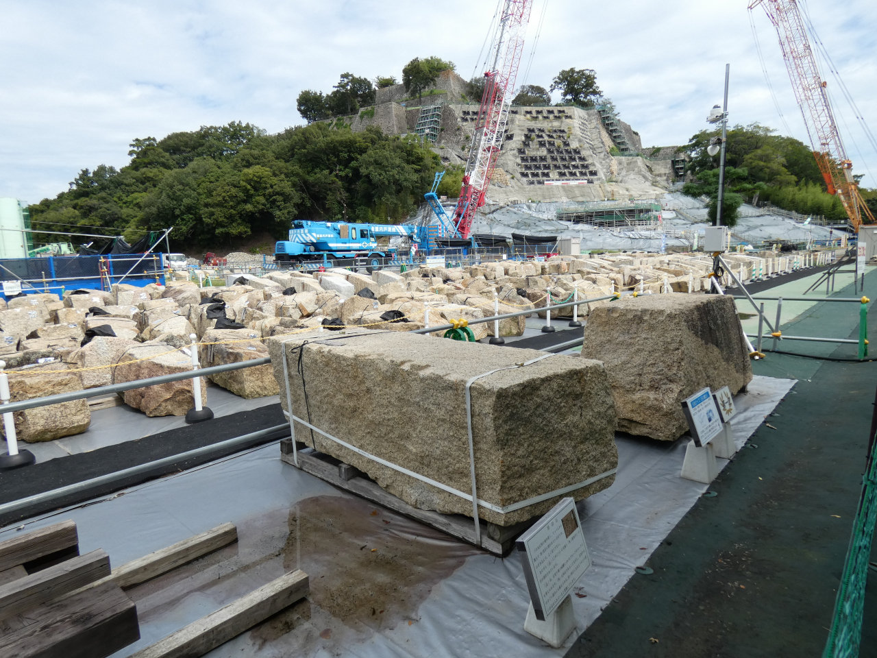 丸亀城を訪れた後、石垣復旧のPR館があることを知り行ってみました。早速、職員の方がいろいろ説明していただいたので、こちらからも質問すると、丁寧に教えていただくとともに、いろんな情報と解説をしてくださったので、長時間となったのですが勉強になりました。石垣崩壊のことは知らなかったのですが、平成30年7月豪雨災害で崩れたとのこと。工事中に新たな発見もあったこと、今でしか見られない風景など、詳しく解説していただき、当時の建造物を最新の土木技術で極力再現するという困難に立ち向かう皆様の意欲に元気をもらいました。
