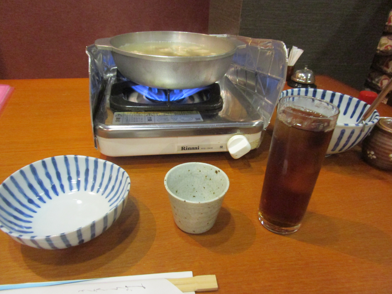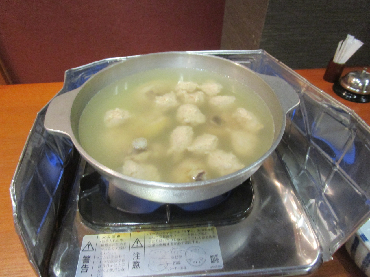 初めに鍋のスープを飲みながら肉や野菜に火が通るのを待ちます。