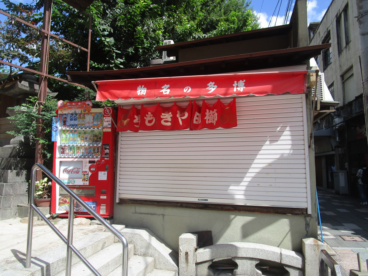 NHKの番組、ブラタモリの本で紹介されていたやきもちのお店だったので櫛田神社を訪れたときに寄ってみましたが、あいにくお店は閉まっていました。