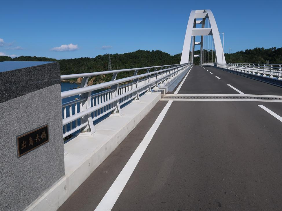 出島大橋(いずしま・おおはし)は、2024年12月に完成した長さ364mのアーチ橋で、女川町(おながわ・ちょう)尾浦と離島の出島(いずしま)とを結ぶ橋。