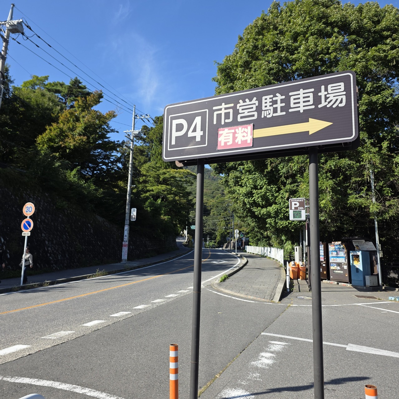 石段街のスタート地点、県道33号線沿いにあるP4市営駐車場(有料)に車を停め歩きました。